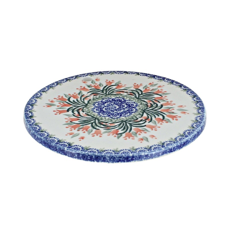 - Beautiful trivet from Ceramika Artystyczna - 7.25" diameter with a hole for hanging!
