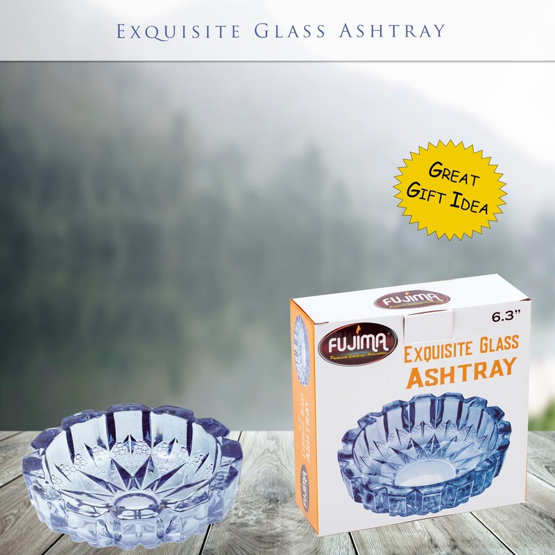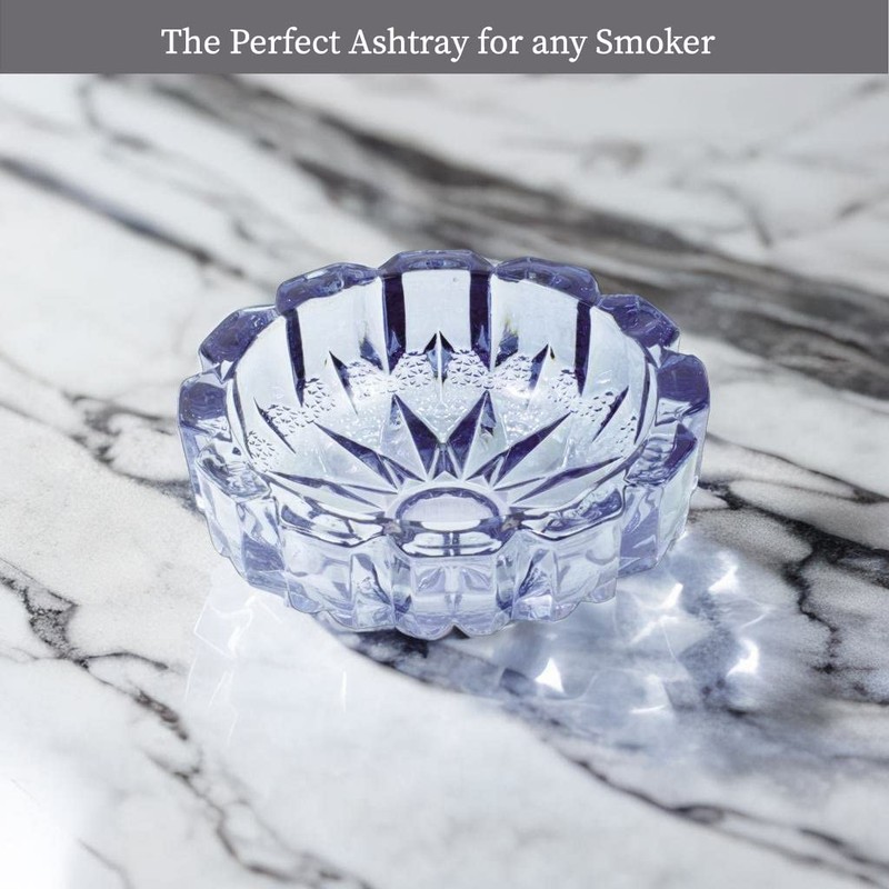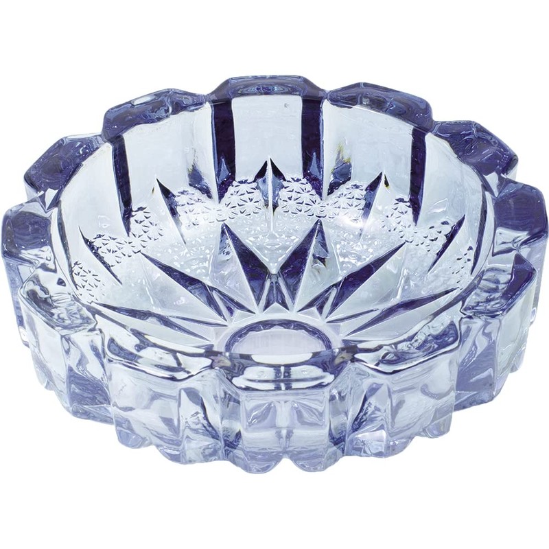 Blue Round Electroplated Glass Ashtray 5.5" by Fujima- Electroplated, Round Wave Design. Ideal for Home, Office, and Outdoor Use.