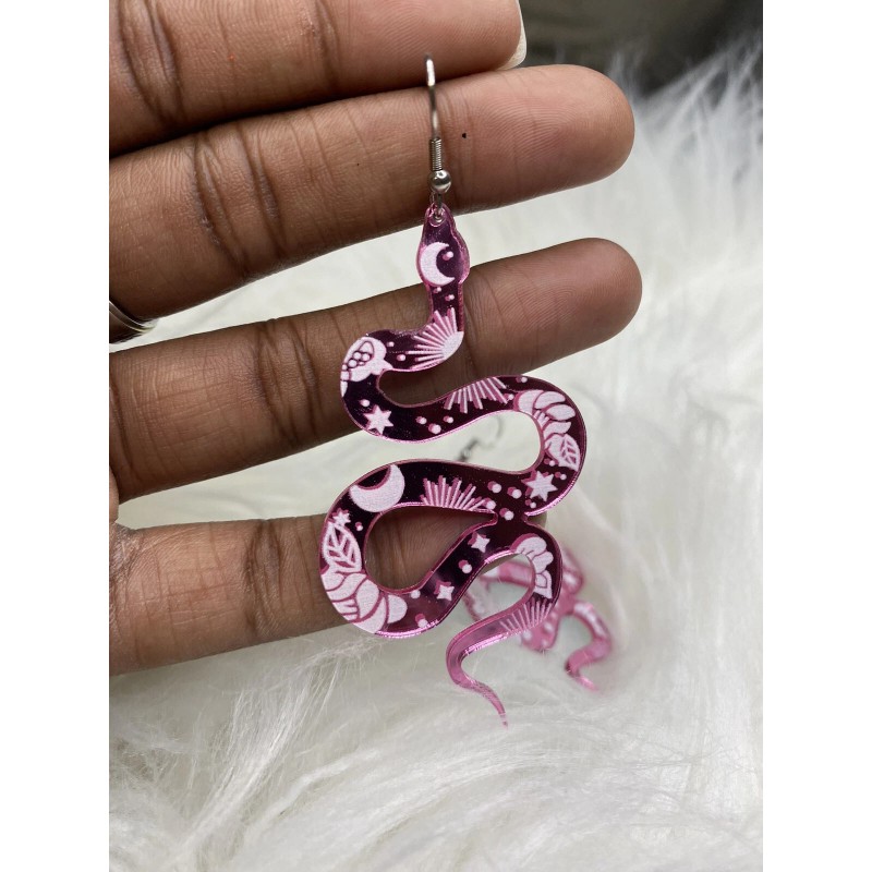 Blue’s Glitter & Accessories Hot Pink Snake Acrylic Earrings Mirrored Serpent Hypoallergenic Earrings Witchy