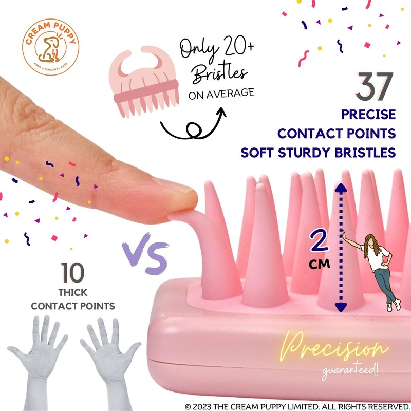 - RELIEVE YOUR SCALP FROM NAIL SCRATCHING 🌿 Swap 10 fingertips for 37 soft sturdy silicone-feel bristles. The Cone-Like structure holds bristles steady as the fine soft tips glide through hair roots, avoiding over-scratching.