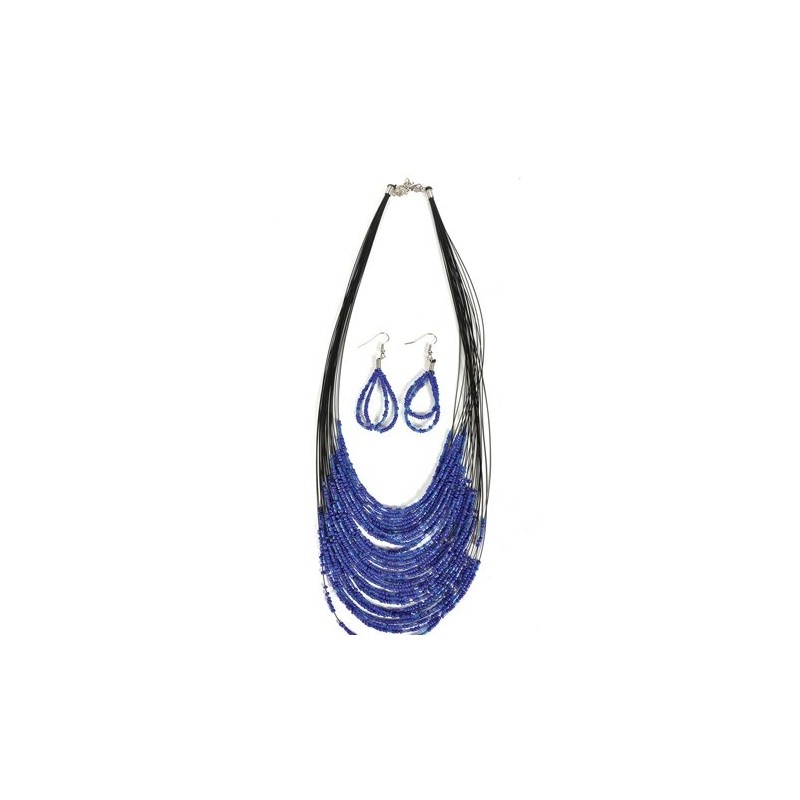 - BLUE SEED BEAD NECKLACE AND EARRING SET