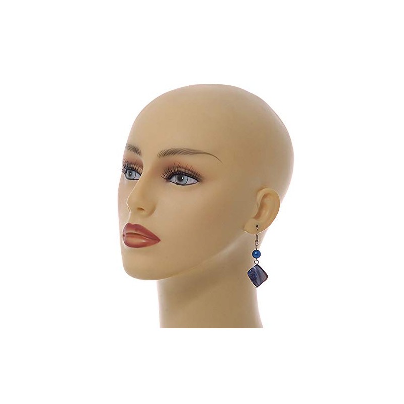 Blue Shell Bead Drop Earrings In Silver Tone - 60mm Long
