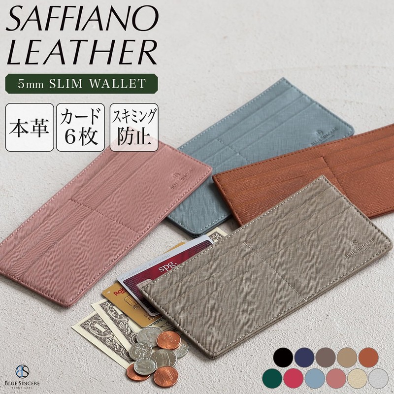 Blue Sincere SW2 Ultra Thin Long Wallet, Genuine Leather, Card Case, 6 Cards, RFID Skimming Prevention, Women's, YKK Zipper, Thin, Wallet, Coin Purse, Storage, Small, Mini Wallet, Fragment Case, vivid