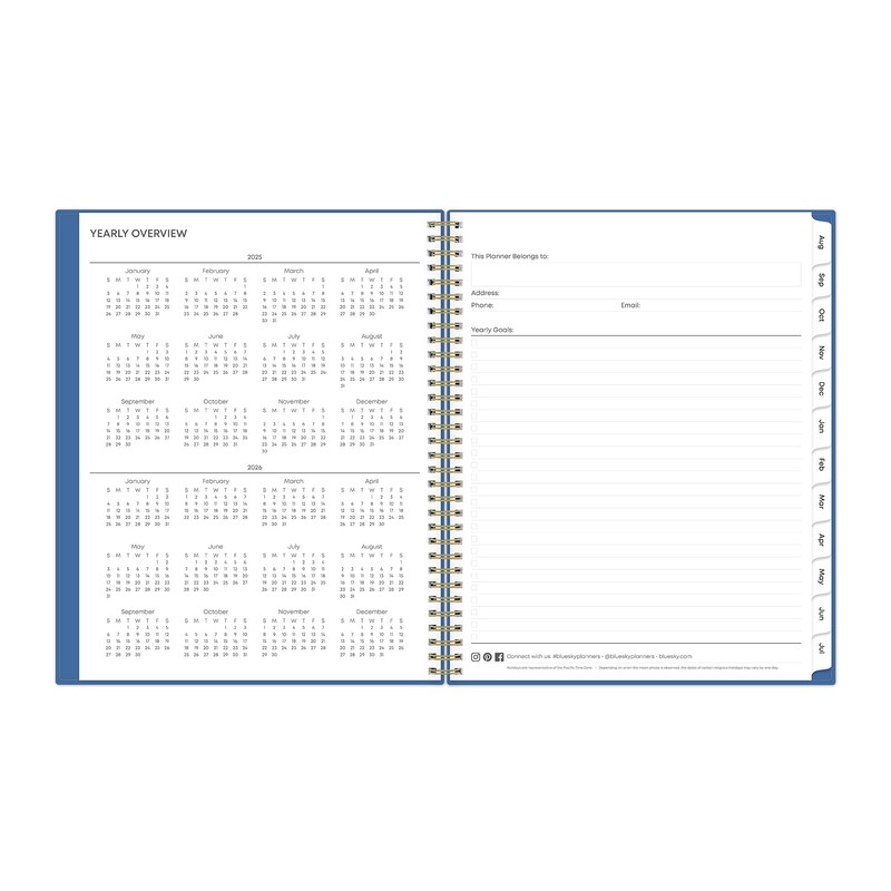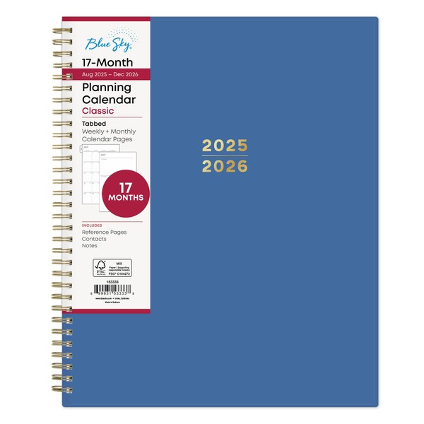 Blue Sky 17 Month 2025-2026 Weekly and Monthly Academic Year Planner Calendar, August 2025 - December 2026, 8.5" x 11", Flexible Cover, Wirebound, Laminated Tabs, Azure