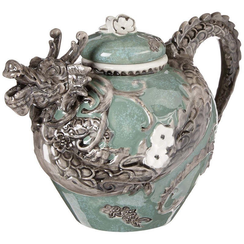 Blue Sky Ceramic Dragon Teapot, 10 x 7 x 7", Green