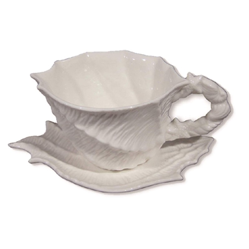 Blue Sky Ceramics Shell Figural Cup & Saucer White, Multi