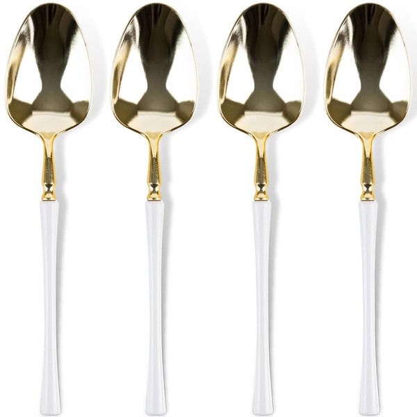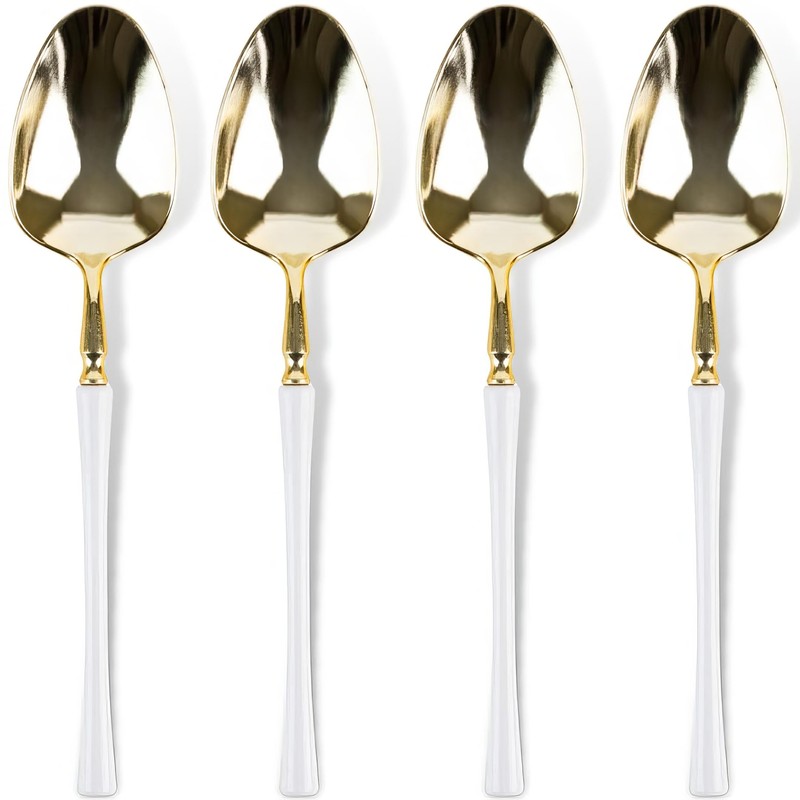 - VERSTILE & STYLISH: Perfect for weddings, birthday parties, baby showers, corporate events, or any gathering where you want to make a statement, our Infinity Flatware White/Gold Soup Spoons are the go-to choice for discerning party planners and hosts.