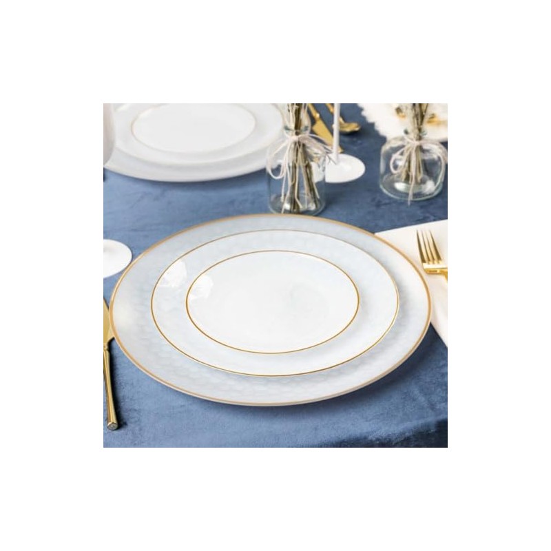 - VERSATILE FOR ANY OCCASION: Whether you're hosting a wedding, birthday party, or a corporate event, these stylish gold rim plates will seamlessly blend into any décor, providing a luxurious feel and elevating your table setting.