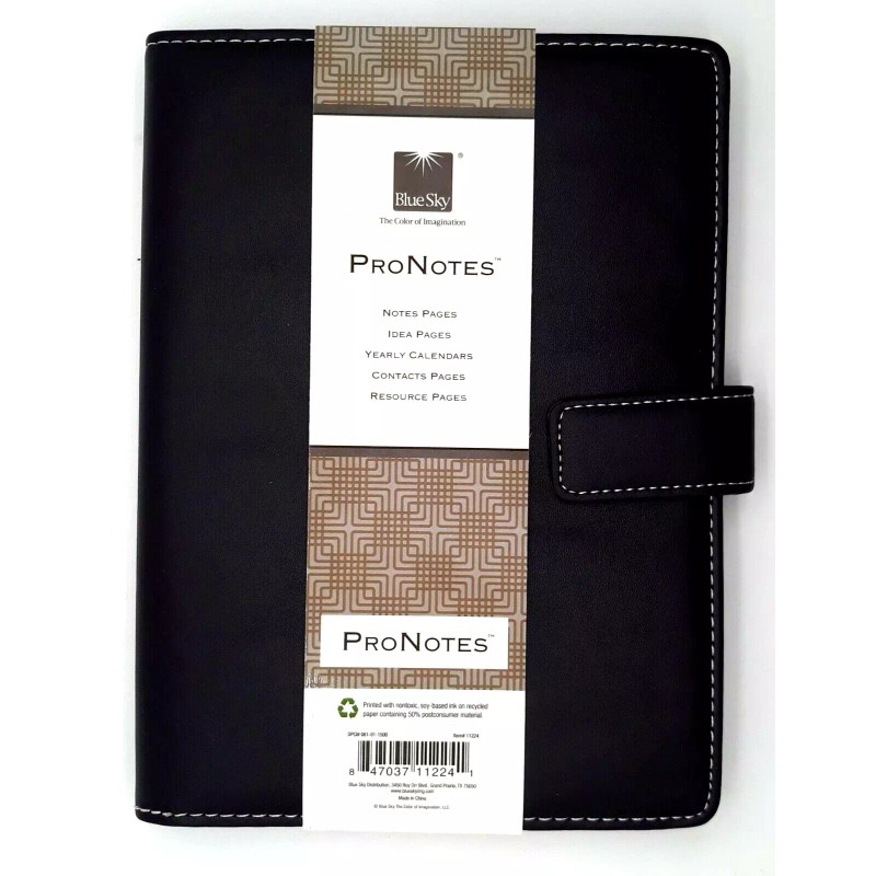 Blue Sky Pro Notes Black Notebook / Planner Faux Leather #11224 8 1/2" x 5"
