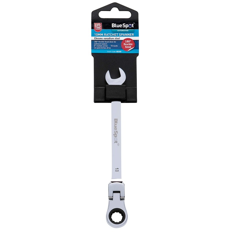 Blue Spot Tools 05102 10mm Chrome Vanadium Ratchet Spanner Flexible Head (180°)