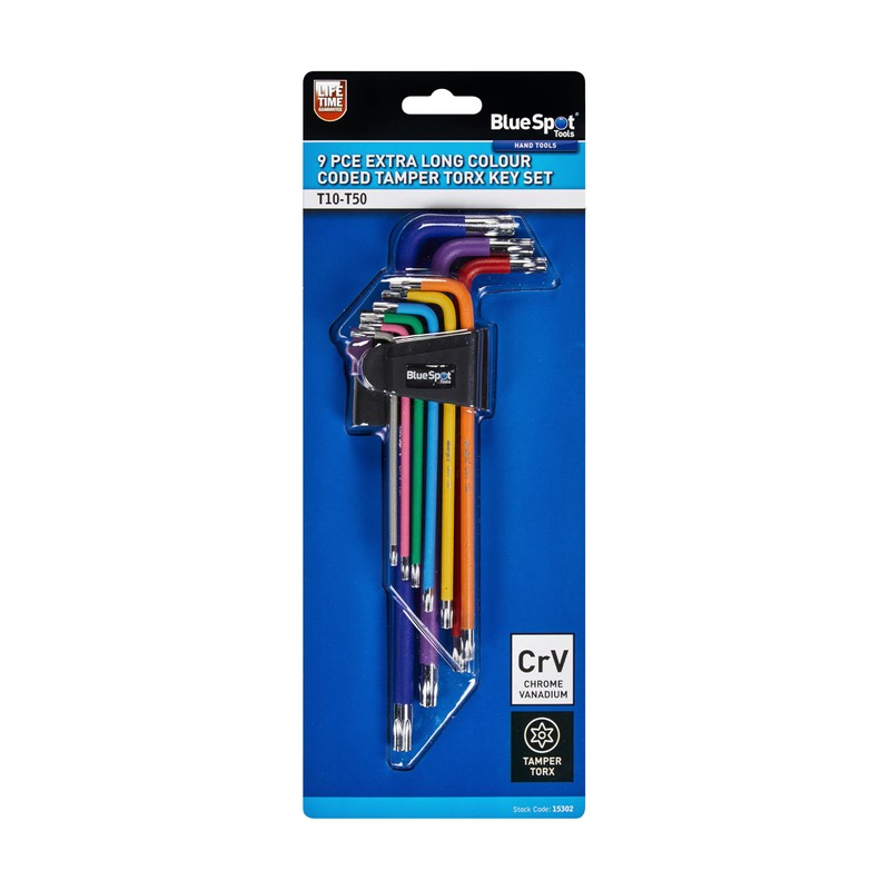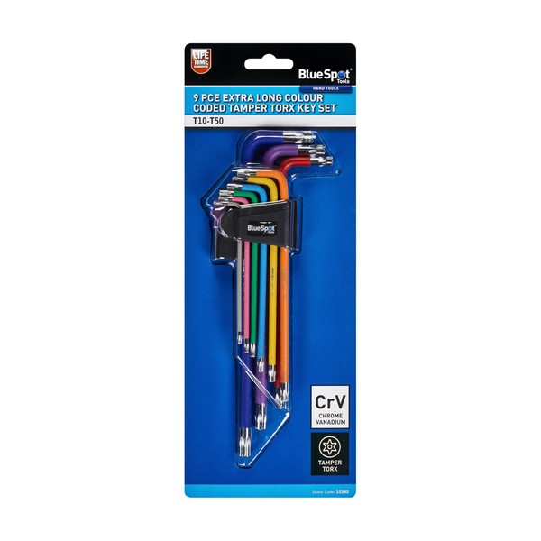 Blue Spot Tools 15302 9 PCE Extra Long Colour Coded Tamper Torx Key Set (T10-T50)