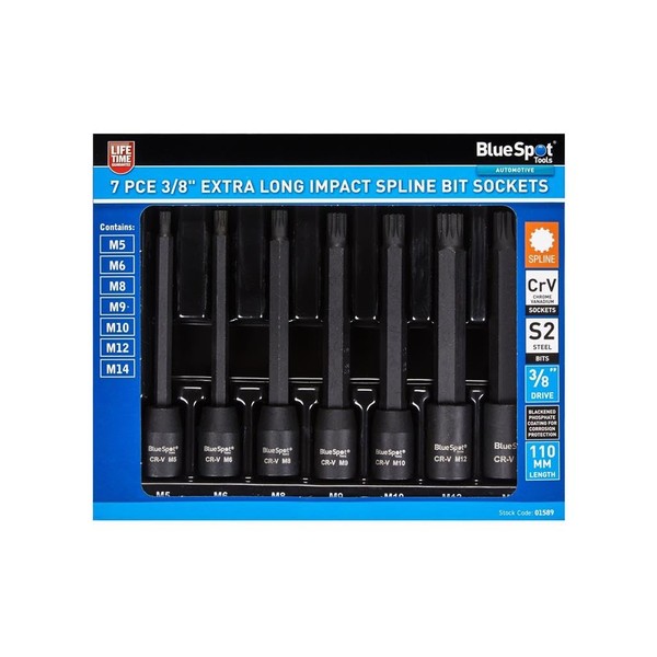 Blue Spot Tools 7PCE 3/8" Extra Long Impact Spline Bit Sockets (M5-M14)