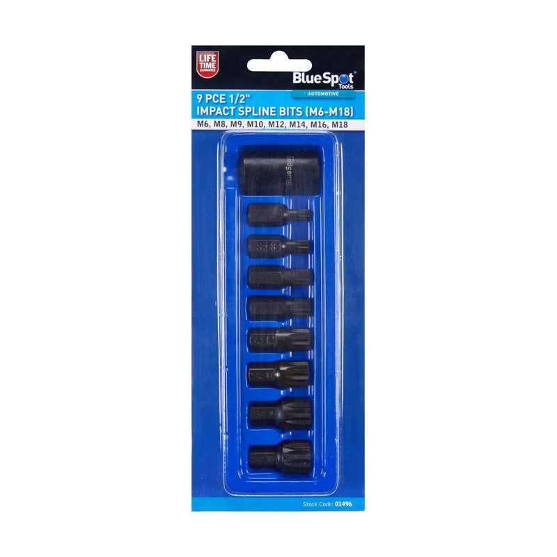 Blue Spot Tools 9pce 1/2 Impact Spline bits (M6-M18)
