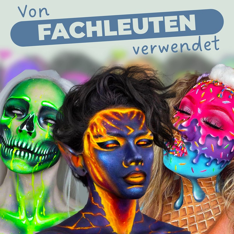 - Easy clean: The Blue Squid Pro body painting paint set is water-activated neon make-up that is easy to clean with soap and water. Apply with a sponge or make-up brush. As with all cosmetics, we recommend that a small skin patch test be performed before applying to the face, as skin is different for everyone