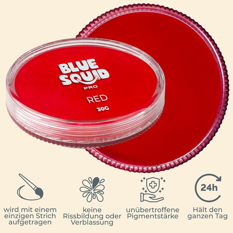 Blue Squid PRO Make-Up Face Paint and Body Paint, Classic Red 30 g, High Quality, Professional, Water-Based Single Container, Face and Body Paint for Adults, Children and SFX