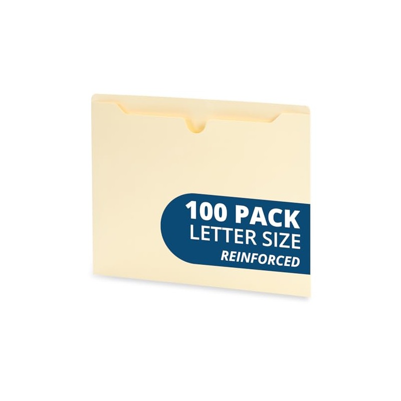Blue Summit Supplies Manila File Jackets, Reinforced Straight Cut Tab, Designed for Use in Standard Hanging Files, Letter Size, 100 Pack