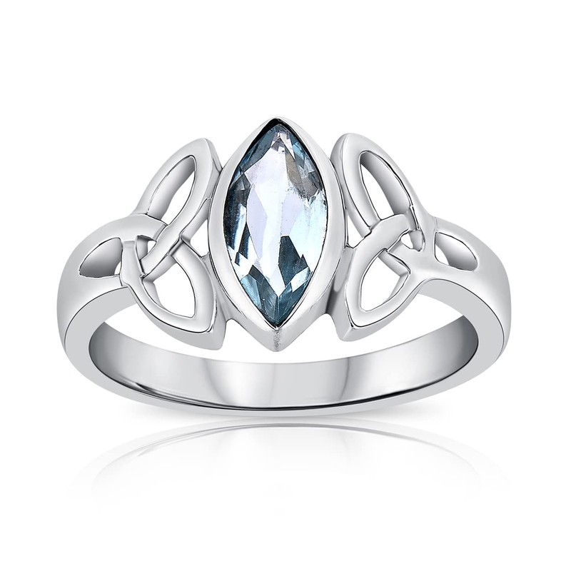 Blue Topaz & 925 Sterling Silver Ring Celtic Trinity Knot Design - T