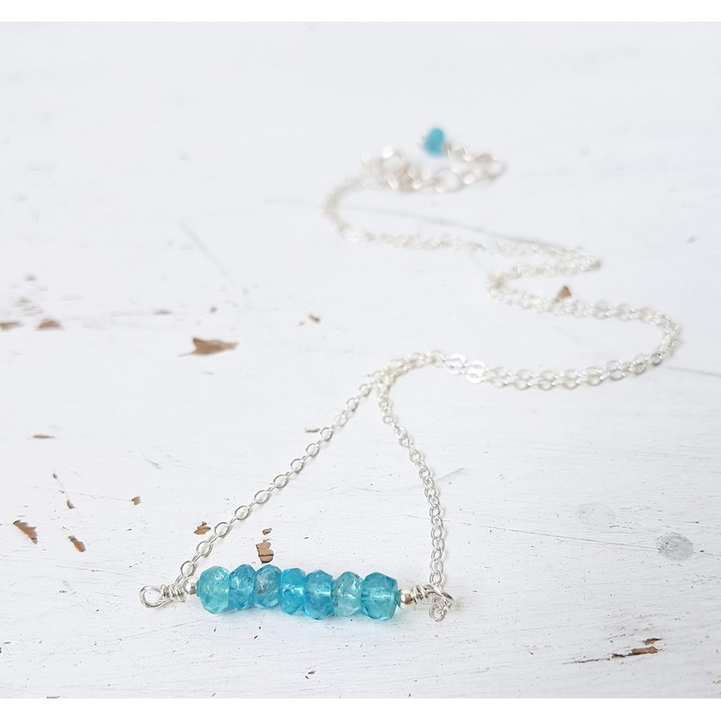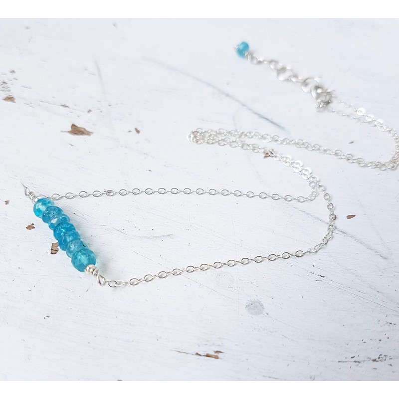 Blue Topaz Bar Beaded Necklace Natural Gemstone Handmade Jewelry 16" length+extension