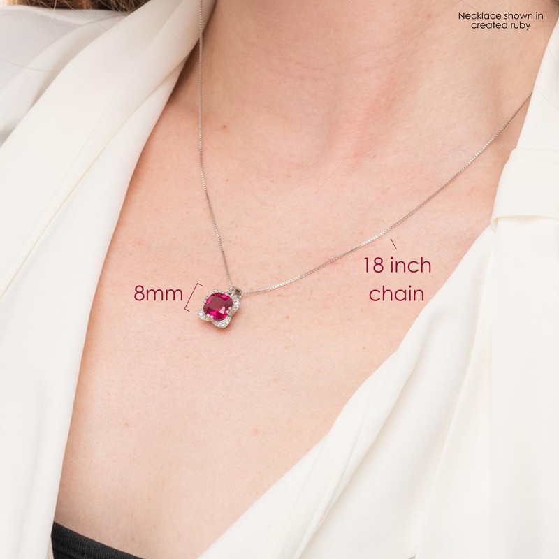 - STUNNINGLY CRAFTED with an Cushion cut 3 CT Birthstone in Sterling Silver. With an 18In chain and eye-catching created White Sapphire Accents, you'll be sure to shine!