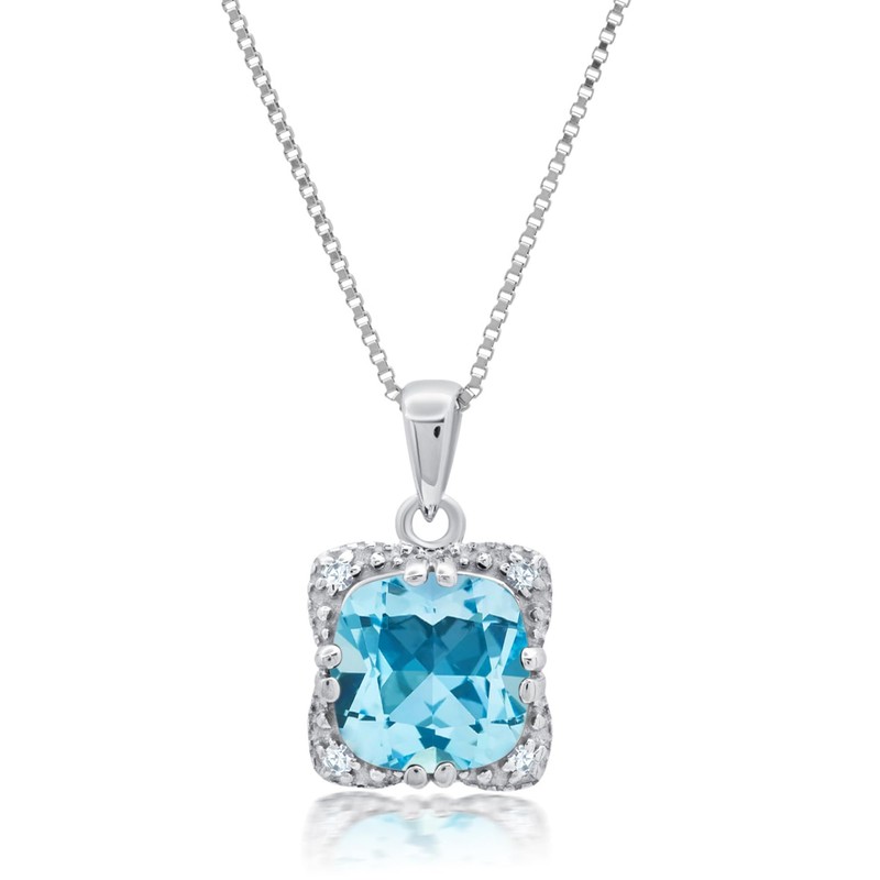 Blue Topaz Necklace 925 Sterling Silver Cushion Cut 18 Inch Chain Spring Ring Clasp White Sapphire December Birthstone Necklace for Women Birthstone Charms Gemstone Necklace Birthstone Jewelry