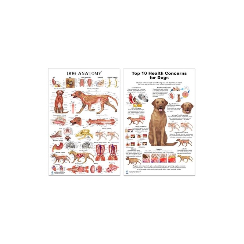 Blue Tree Publishing Dog anatomy and 10 Health Concern 2 chart set, Anatomy & Veterinary Physiology Canine - For Vet Nurses And Students, 24 x 36inch