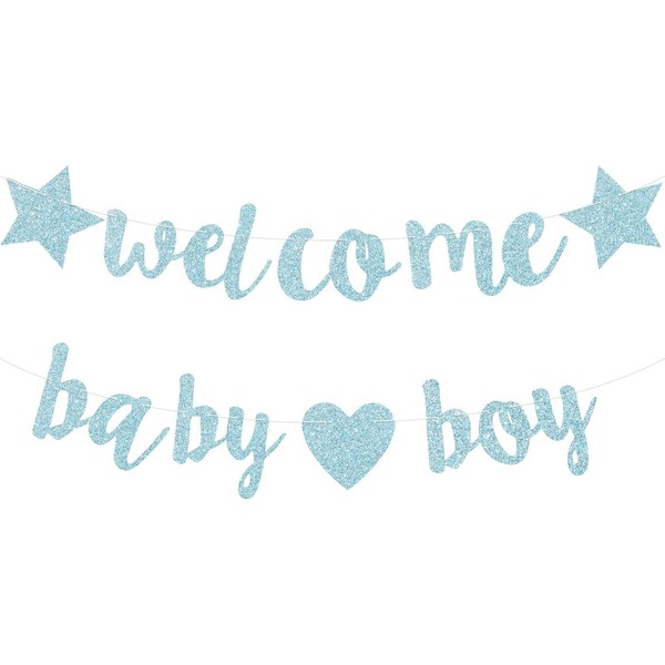 Blue Welcome Baby Banner, Welcome Back, Home Banner Decoration with Hearts, for Party Decoration