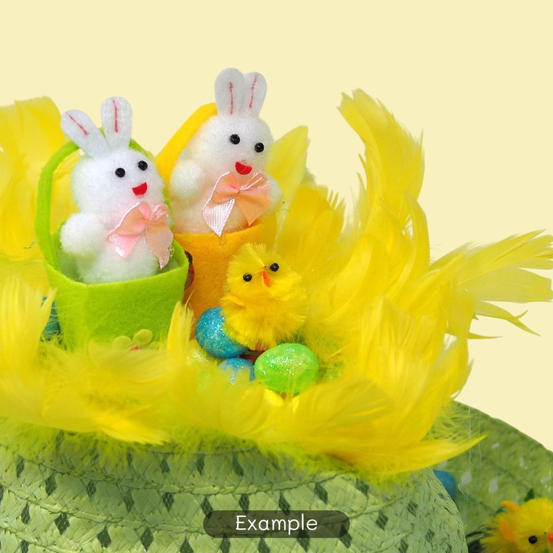 - Includes Easter bonnet hat, and all the accessories shown in the photograph! Bunnies, craft grass, chicks, eggs, and more!