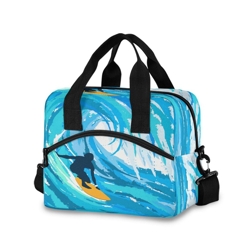 Blueangle Watercolor Surfing Print Insulated Lunch Bag with Detachable Shoulder Strap & Carry Handle, Eco-friendly Cooler Bag Tote Bag,Lunch Box for Men Women