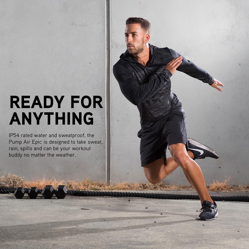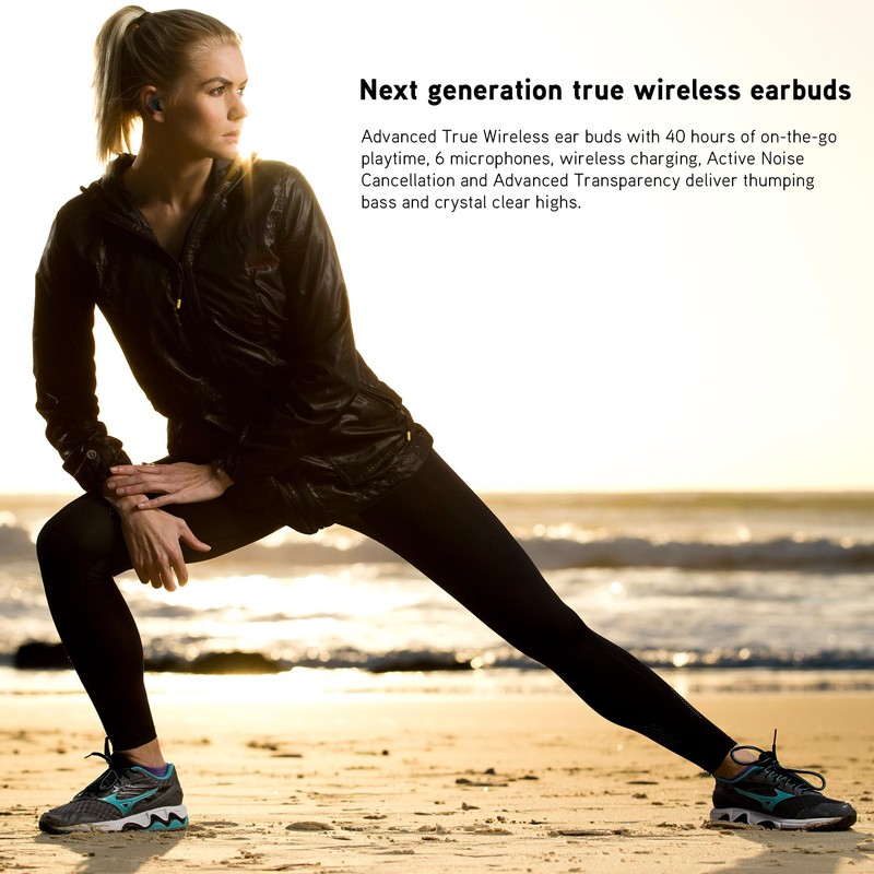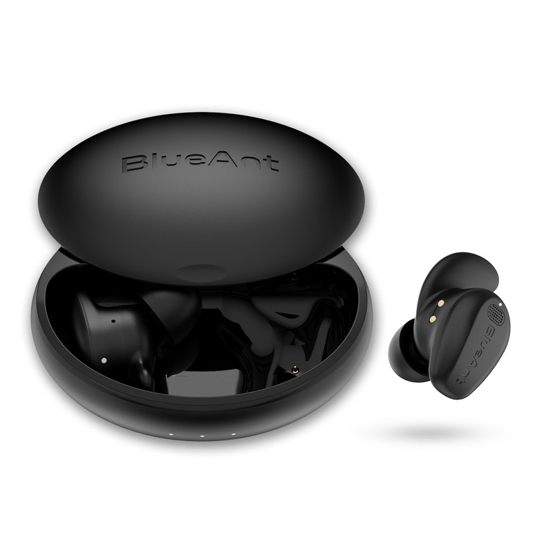 BlueAnt Pump Air Epic True Wireless Earbuds, Active Noise Cancellation, 40 Hours Playtime, Black/White (Black)