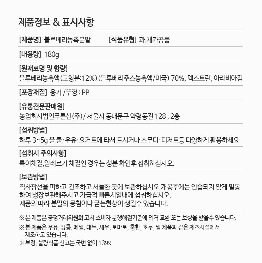 | 표시광고주체 | 농업회사법인 푸른산 주식회사 |