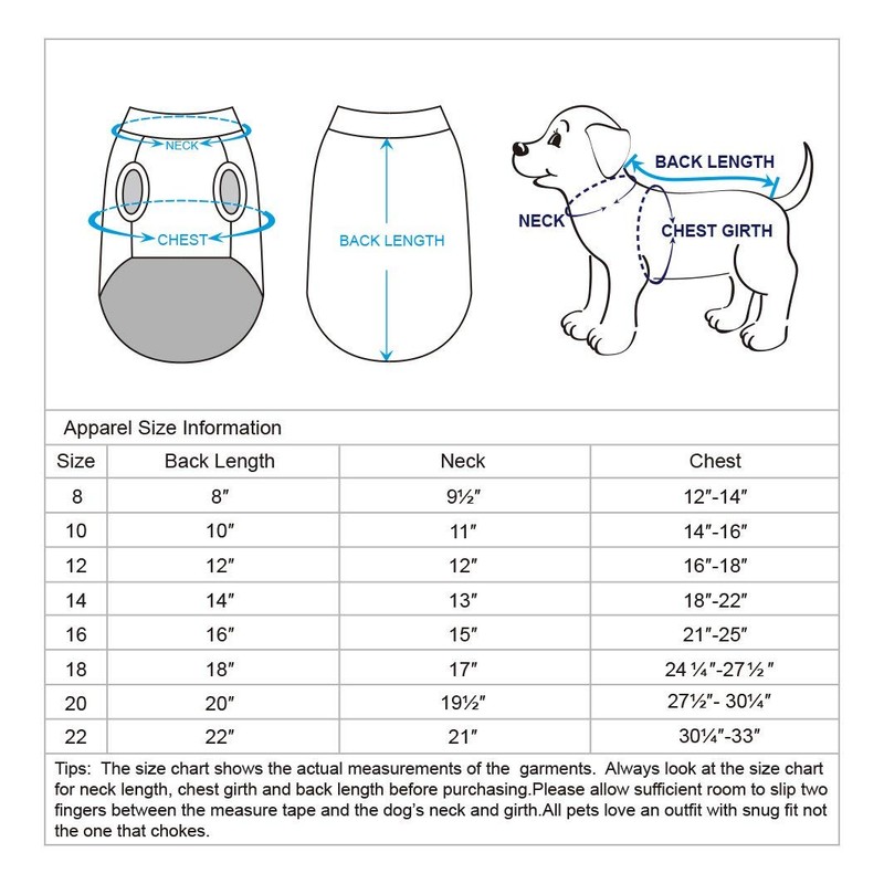 - [Size] - Back Length 12", Chest Girth 16"- 18", Neck 12"; Measure your dog from the base of the neck to the base of the tail for back length