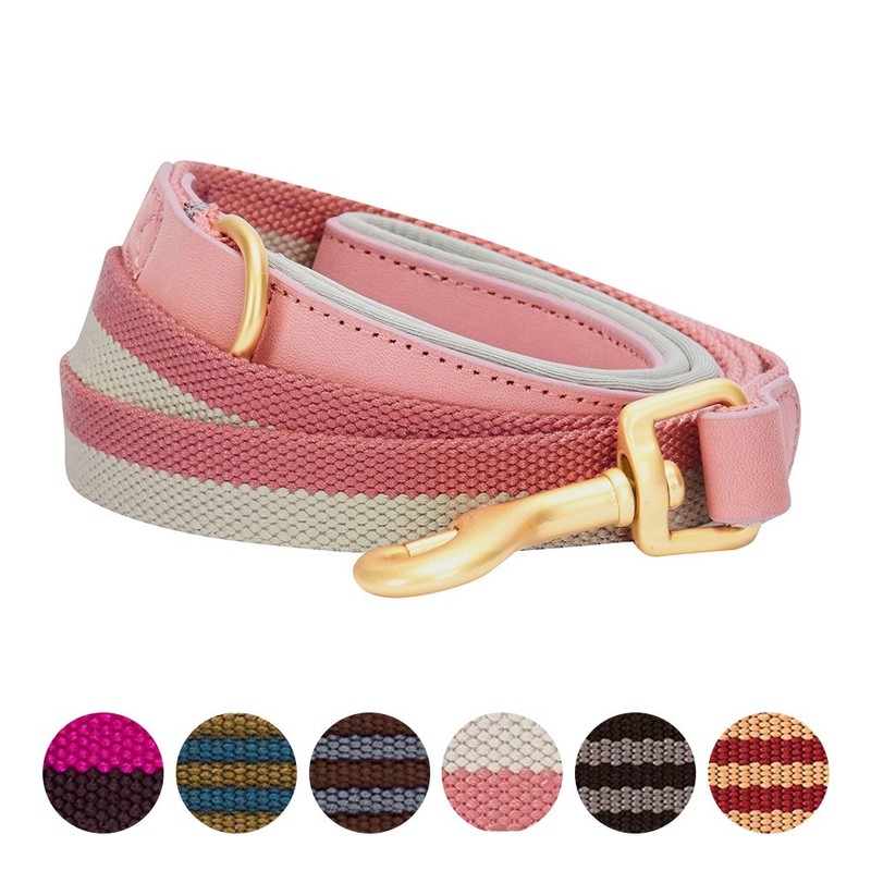 Blueberry Pet Polyester Fabric Webbing and Soft Genuine Leather Dog Leash with Soft & Comfortable Handle, 4 ft x 3/4", Pink and Grey, Leashes for Dogs