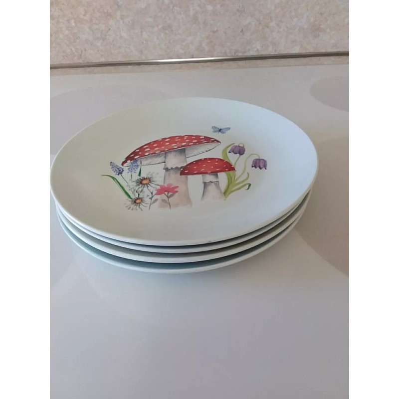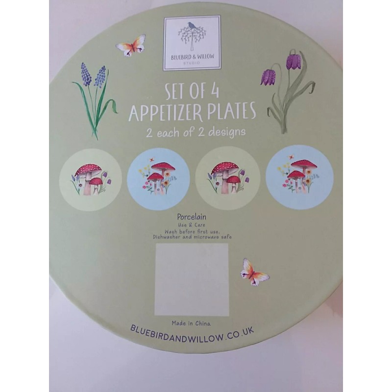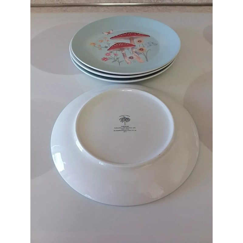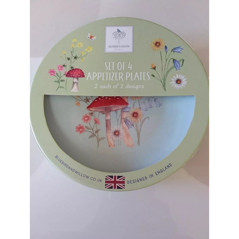 Bluebird Willow Studio Set of 4 Bluebird & Willow Appetizer Luncheon Mushroom...
