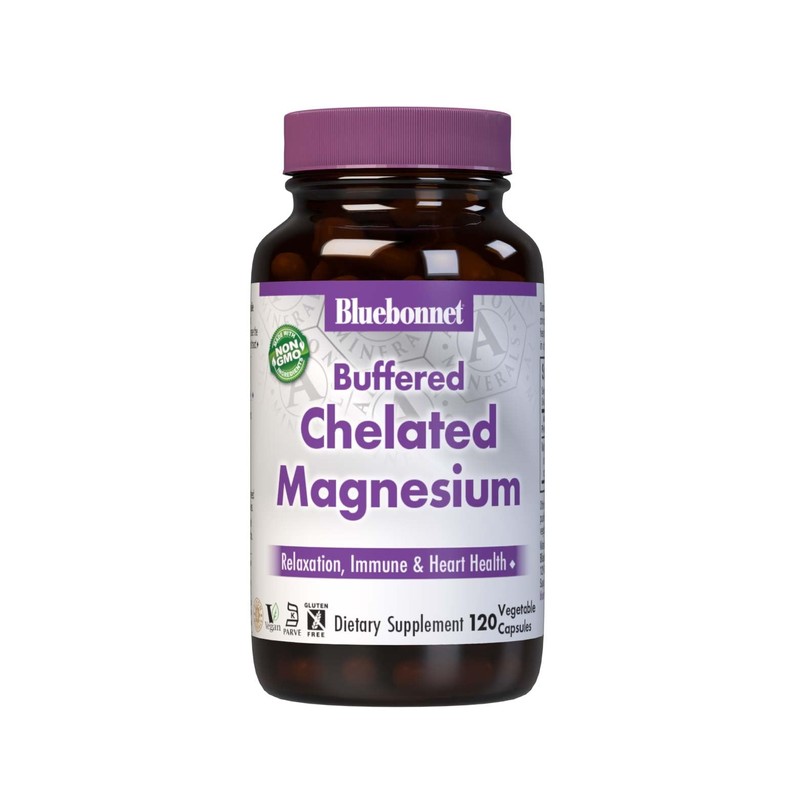 Bluebonnet Nutrition Albion Buffered Chelated Magnesium 200 mg, Magnesium Oxide, Stress Relief, Vegan, Non GMO, Gluten Free, Soy Free, Milk Free, Kosher, 120 Vegetable Capsules, 2 Month Supply