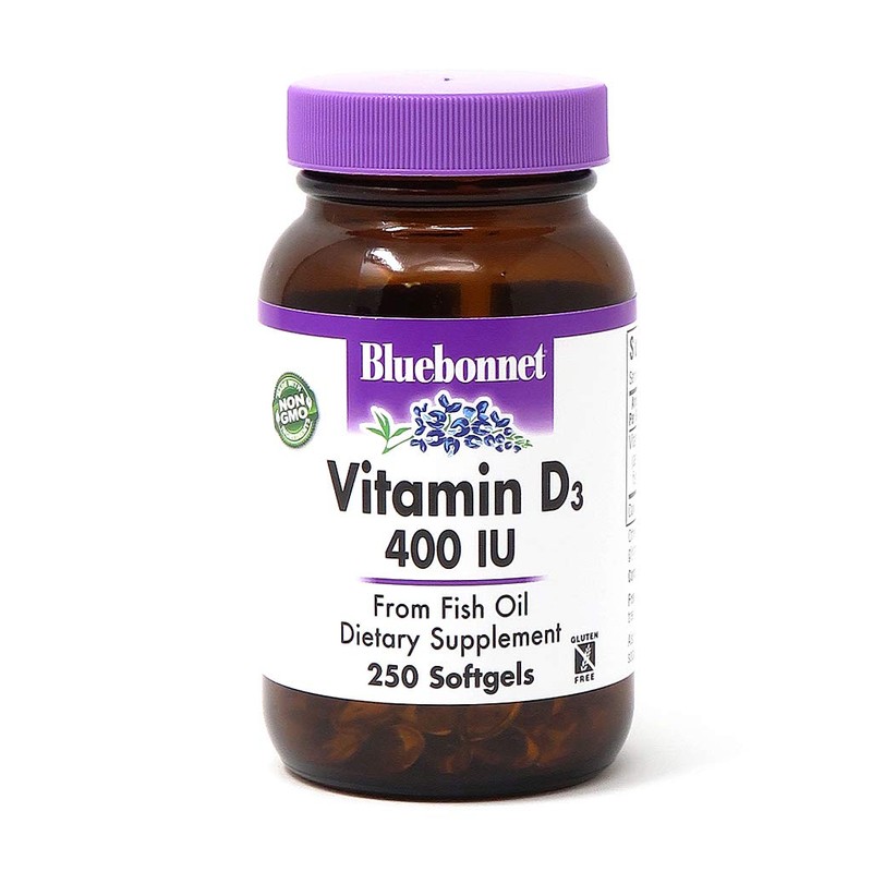 Bluebonnet Nutrition Vitamin D3 400 IU Softgels, Aids in Muscle and Skeletal Growth, Cholecalciferol from Fish Oil, Non GMO, Gluten Free, Soy Free, Dairy Free, 250 Softgels