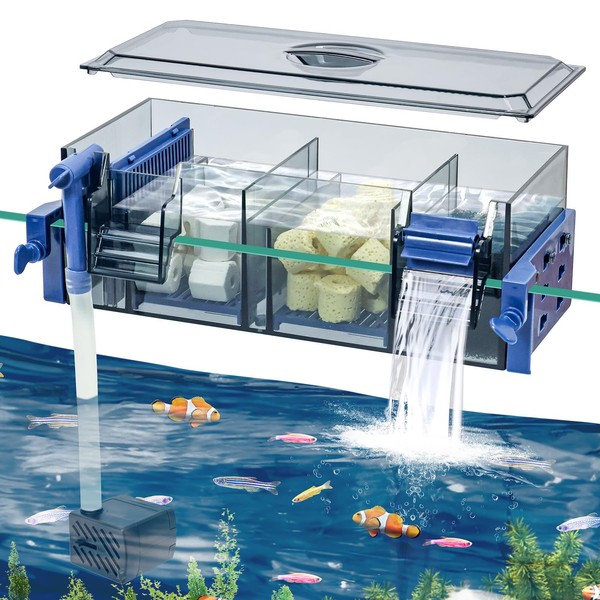 - 【Dust and Splash Protection】 This filter for fish tanks includes a dust cover, preventing debris from entering and water from splashing out. It's a practical addition for maintaining a clean and tidy aquarium, whether you use it as a 10 gallon aquarium filter or for larger tanks.