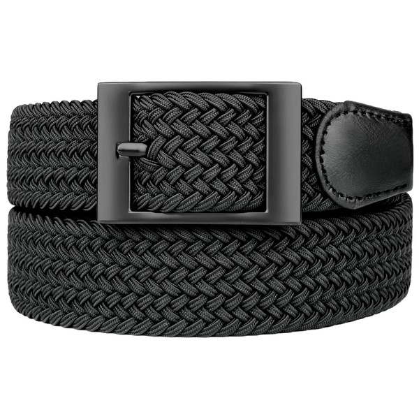 - THE LATEST DESIGN: This is a new design combination of a square business classic buckle and casual woven belt. Our buckle is a classic style, no matter you go for a working meeting or party, fit for the commute to work, or casual wear. Our braided belt is made of superlative sky silk. It ensures that the belt will last for more than 10 years. and this is NO HOLE belt!