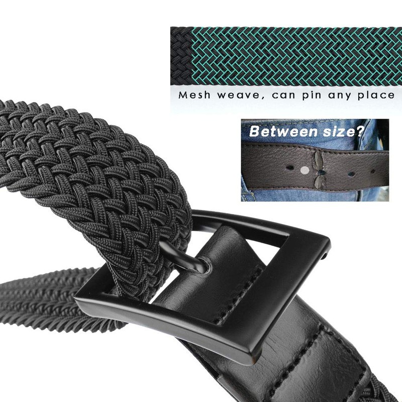 Bluecton Belt Elastic Stretch Woven Braided Belt for Men/Women Plus Size Black Rectangle Business Buckle Size 120cm
