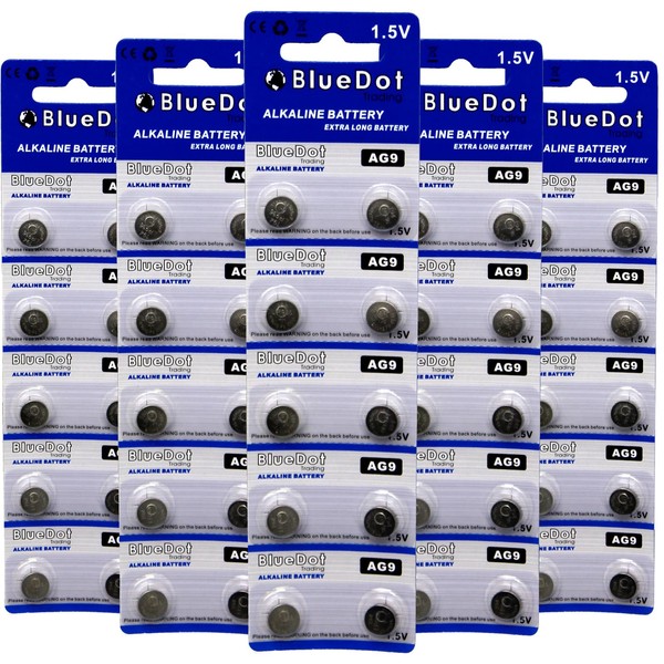 BlueDot Trading AG9, SR45, SG9, LR45 Alkaline Button Cell Batteries Ideal for Hearing aids, Watches, calculators, thermometers, Toys, and More - Quantity 50 Count