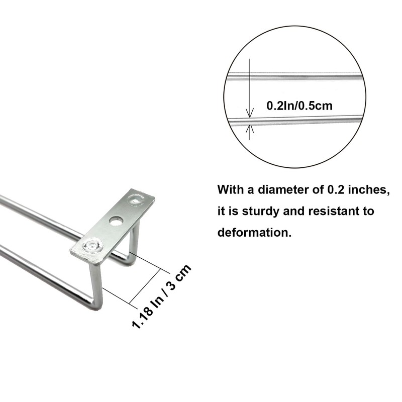 - SIZE: This single row stemware holder comes in a pack of 2, measuring 10.8 x 4.3 x 1.97 inches. It provides ample room to store all your glassware for entertaining, but if you need more space, you can install multiple units side by side for additional storage space. This versatile storage solution is perfect for any home, ensuring your stemware is not just stored efficiently but also adds to the aesthetics of your space.