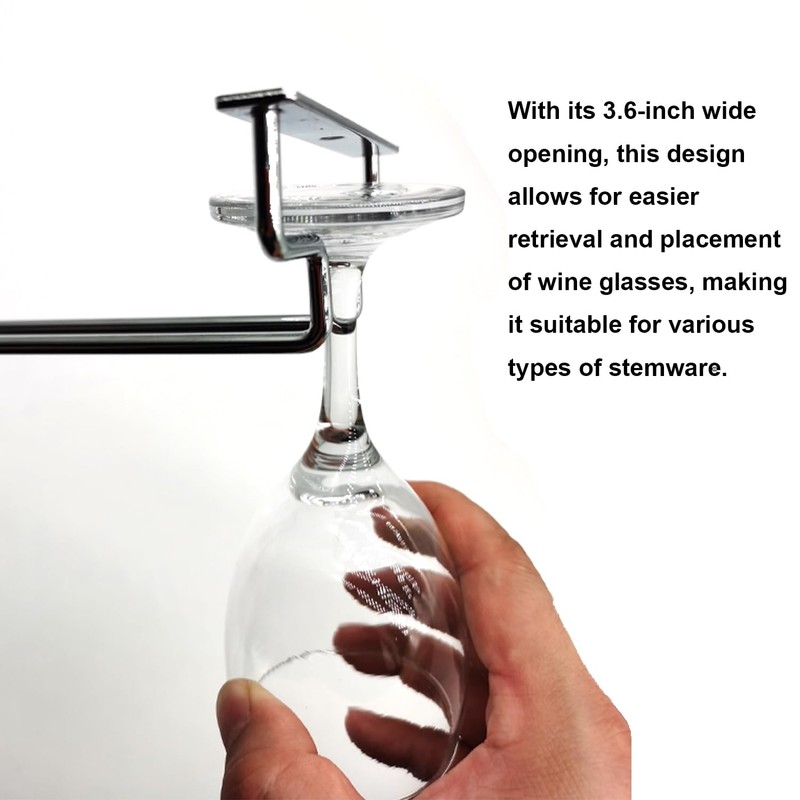- STORAGE & ORGANIZATION: This stemware rack is incredibly versatile and can be installed anywhere you want, be it under your kitchen cabinets, bar counter, dining room, or any other space that requires efficient storage. Its sleek design not only looks great but also ensures that your stemware is always at hand for your next impromptu gathering.