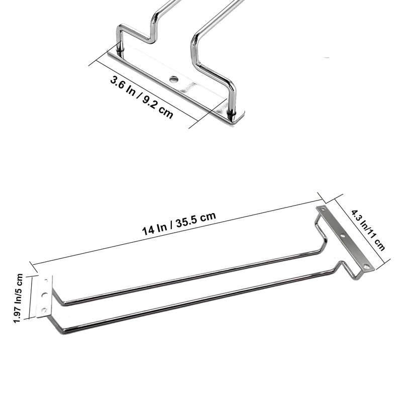 - SIZE: This single row stemware holder comes in a pack of 2, measuring 14 x 4.3 x 1.97 inches. It provides ample room to store all your glassware for entertaining, but if you need more space, you can install multiple units side by side for additional storage space. This versatile storage solution is perfect for any home, ensuring your stemware is not just stored efficiently but also adds to the aesthetics of your space.