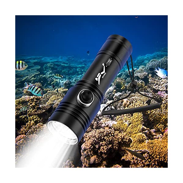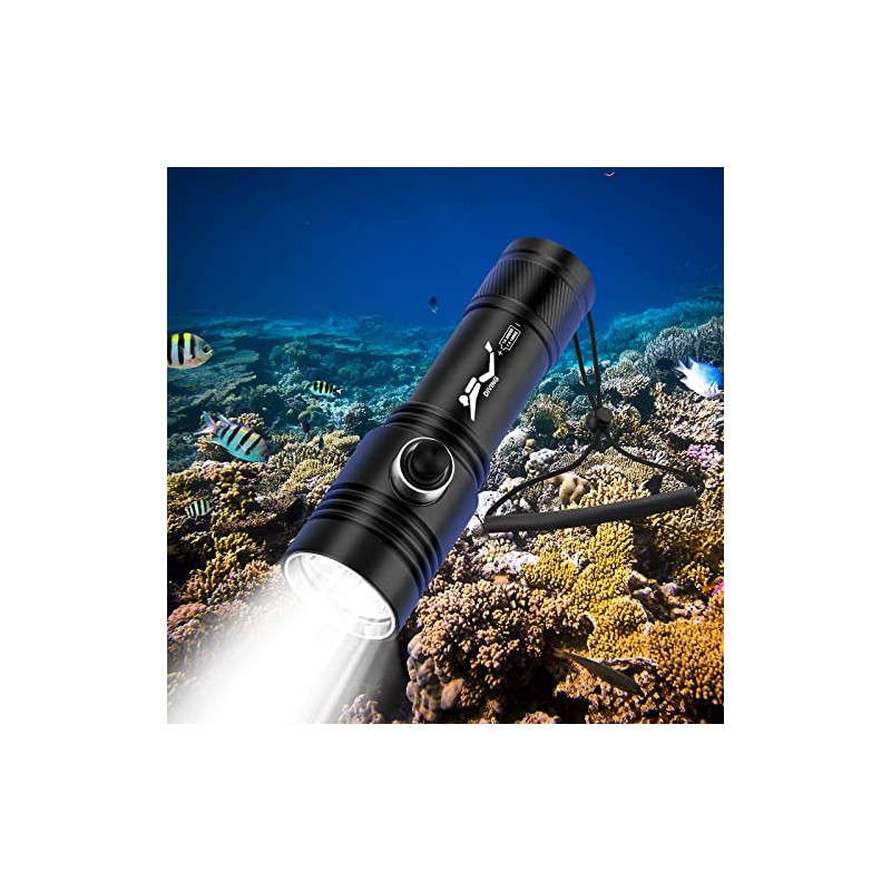 - 【QUALITY SERVICE】Made of high-quality aluminum alloy material,The diving flashlight includes a lanyard and a hand strap,which is easy to carry and use underwater, whether it is diving, mountaineering, fishing, hiking, traveling, and night walking. If you are not satisfied with diving flashlight, Please contact us by email FIRST. We will free replacement or full refund.