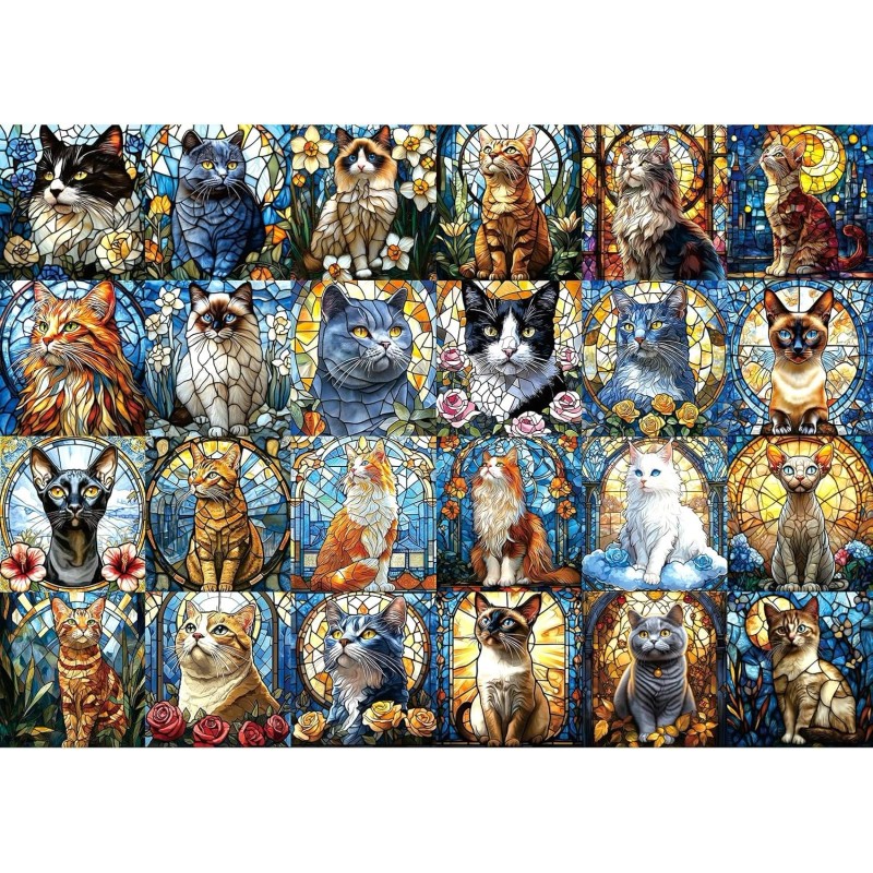 1000 Piece Puzzle for Adults - Stained Glass Cats Mosaic