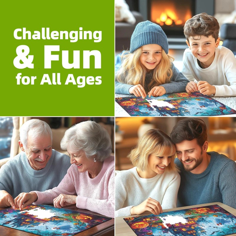 👻 The Ultimate Halloween Gift: A must-have for puzzles for adults 1000 pieces fans! Ideal for Halloween, birthdays, or adult games for game night, this jigsaw puzzle includes a full-color poster—or dare to assemble it in the dark for extra chills.