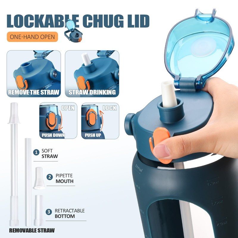 - TWO LIDS DESIGN: Our motivational glass water bottle boasts 2 lids, a flip lid and a spout lid, to meet your various needs of drinking on different occasions and making you get 2 bottles with 1 bottle’s cost.