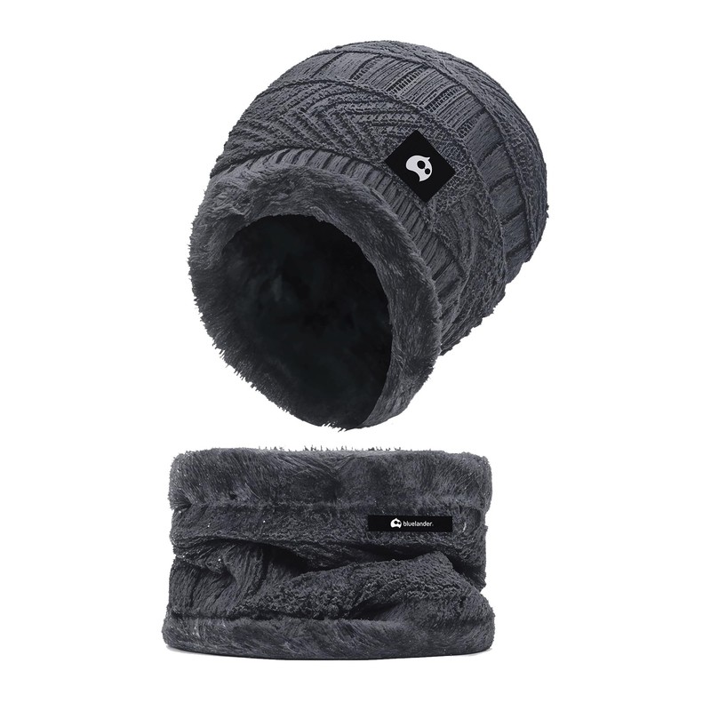 Bluelander Gorros para Invierno con Bufanda Hombre y Mujer, Conjunto de Bufanda con Gorro, Forro de Lana, A Prueba de Viento, Invierno (MX/US, Alfa, Talla única, Gris - 1 Pieza)