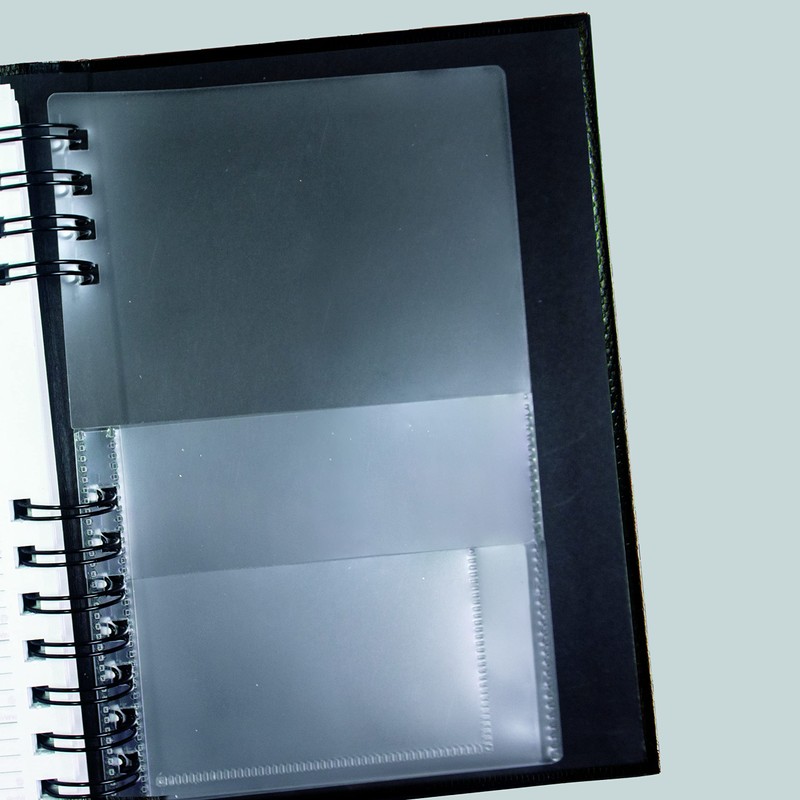 - Twin-wire binding with hard lizard-like cover in Black