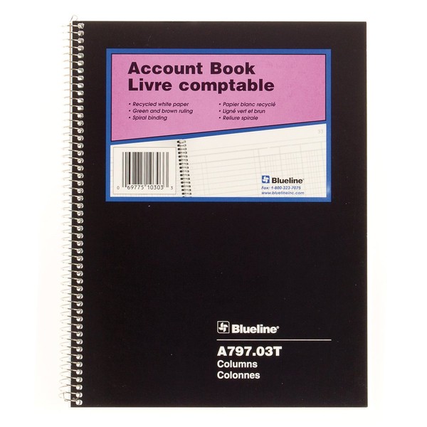- Blueline Account Book. 3 columns with description