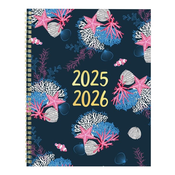 Blueline® Essential Academic Monthly Planner, 14 Months, July 2025 to August 2026, Gold Twin-Wire Binding, Poly Cover, 11" x 8.5", Under the Sea Design, Starfish (CA714PH.03-26)